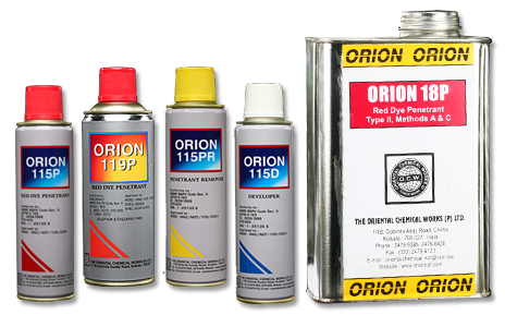 | ORION 19P1 | High sensitivity TypeII, Method A | Not Required | ORION 115D, ORION 119D, ORION 21D, ORION 22D | High sensitivity, water washable Red Dye for precision jobs. | 1/5/20 Litres |